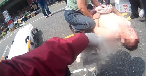 消防局說,黃男去年曾因情緒不穩定,被救護車送醫,至今共有15次紀錄;德安消防分隊上午10點多抵達北興街,見黃男全裸躺在雙黃在線,鄰居擔心他被車撞,在他四周放置三角錐、紙箱。