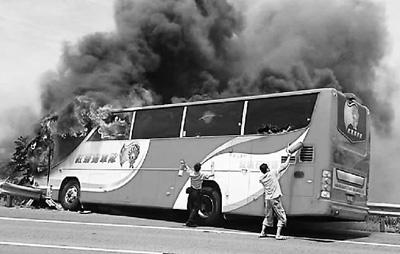 7月19日,臺灣游覽車起火事故現(xiàn)場。