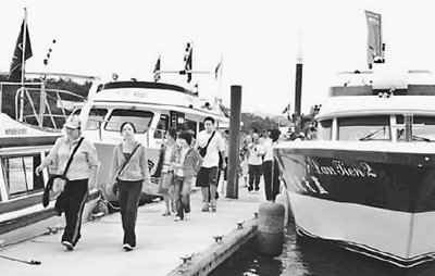 陸客搭乘游艇在日月潭下船。(資料圖片)