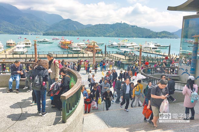 昔日南投縣日月潭水社碼頭陸客團穿梭不息。(《中時》資料圖)