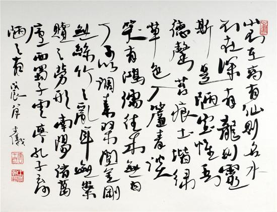 本次展覽以藝術家個人獨創行草為主,展出內容包括文學、哲學、儒釋道三宗;藝術、詩詞以及他個人詩作,旨在藉書藝介紹中華文化,尋對于傳統書法藝術表現的更多感動。