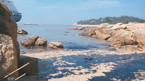 據臺灣“中央社”報道,受臺風“莫蘭蒂”影響,大陸籍貨輪在金門縣古崗外海擱淺,出現漏油污染情形。臺“環保署”官員17日受訪表示,金門環保局已與“海巡署”等人員,布放攔油索及岸際清理作業,會盡全力協助。