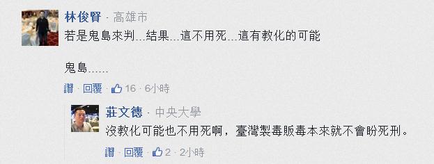 “若是鬼島來判...結果...這不用死...這有教化的可能,鬼島…”,“沒教化可能也不用死啊,臺灣制毒販毒販毒本來就不會判死刑。”