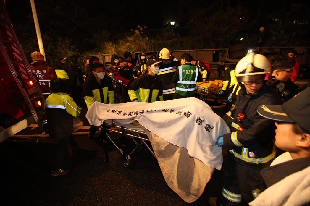據臺北市消防局回報“消防署”數據,游覽車內44人,其中17人明顯死亡未送醫,15人重傷送醫,12人持續搶救中。(中國臺灣網 盧佳靜)
