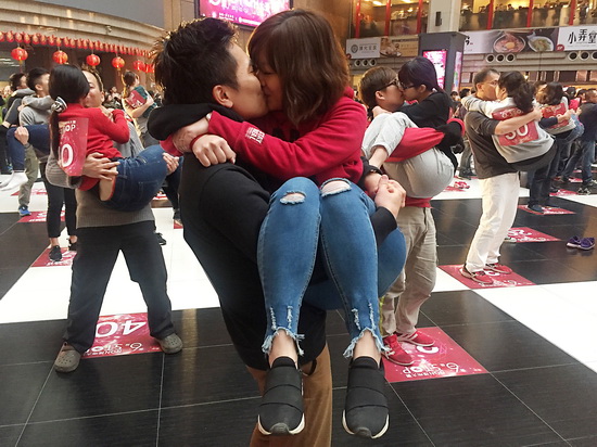 據臺灣媒體報道,微風集團12日舉辦情人節接吻比賽,交往5年的情侶歷經7關、長吻達142分鐘,擊敗百人奪得冠軍,贏得iPhone7和鐵路環島車票大獎;特別的是今年有3對同志伴侶也響應參賽。