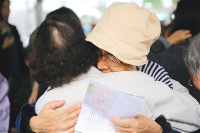 去年底,紀(jì)念館試營運(yùn)之初,多年來支持臺(tái)灣“慰安婦”人權(quán)運(yùn)動(dòng)的日本翻譯中村女士(右)緊緊擁抱臺(tái)灣前“慰安婦”陳蓮花阿嬤。劉 賢攝