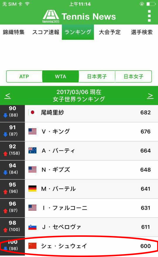據臺灣三立新聞網21日報道,20日深夜,謝淑薇在臉譜貼出日本網站列出的女子網球運動員世界排名。其中排在單打第100位的她,前方的旗幟不是“青天白日滿地紅旗”,也不是“梅花旗”,而是大陸的五星紅旗,讓謝淑薇感到“無言,也很不解”。