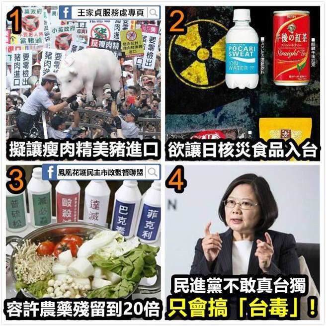 “鳳凰花護民主市政監督聯盟”臉書貼出制圖表示,民進黨不敢真“臺獨”,只會搞“臺毒”。細數蔡當局上臺后,擬讓日本核災食品進口、擬讓瘦肉精美豬進口、首次開放“氟派瑞”(Fluopyram)使用于茶葉,殘留量為6ppm,高于國際標準,這使得容許農藥殘留提高到20倍。