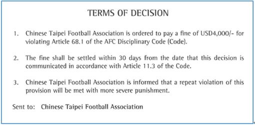 2016年亞足聯(lián)對臺灣處罰決定(臺灣三立新聞網(wǎng)截圖)