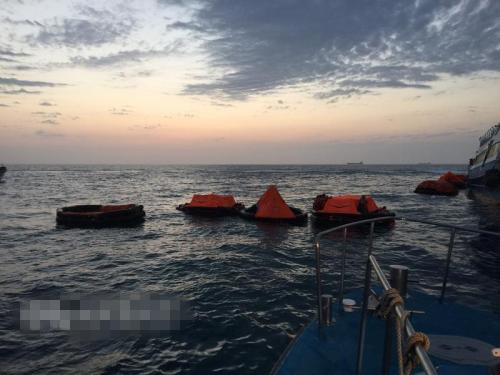 圖為海巡隊趕往時, “凱旋3號”已放下救生艇。圖片來源:臺灣“中央社”
