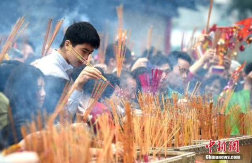 資料圖片,市民燒香祈福。中新社記者 張宇 攝