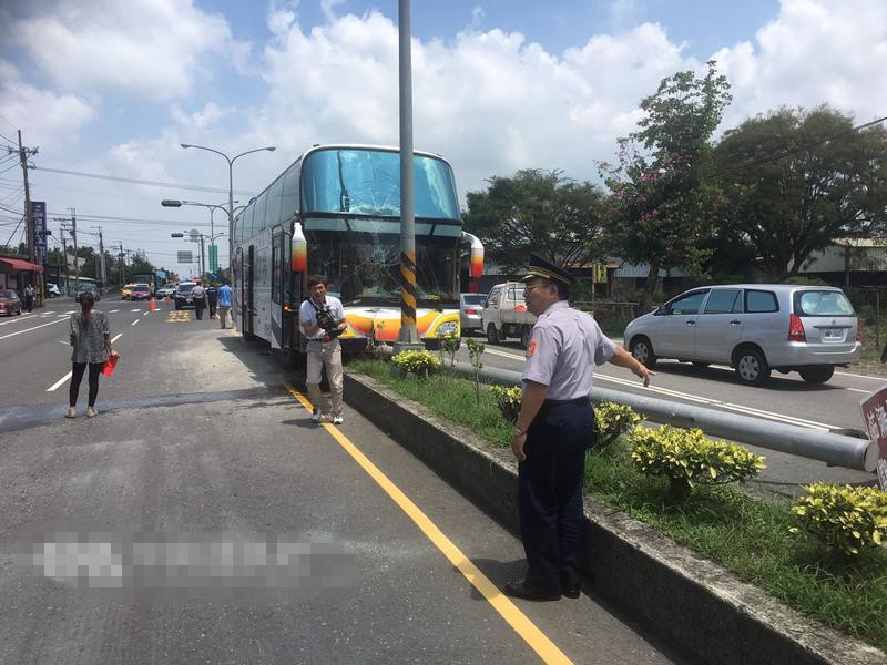 交通事故起因疑似因游覽車司機恍神自撞安全島。(圖片取自臺媒)