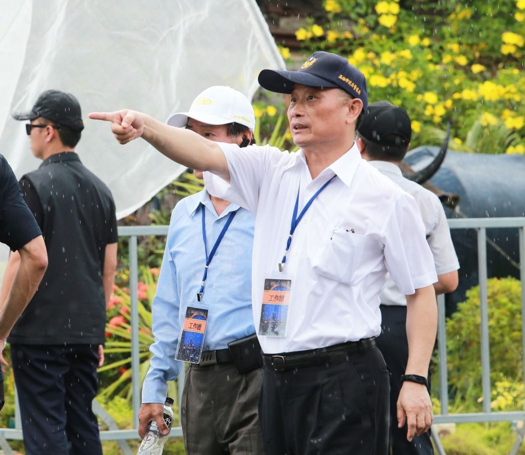 臺(tái)灣新任“警政署長(zhǎng)”陳家欽先前擔(dān)任高雄市警察局長(zhǎng)時(shí),冒雨在雨中指揮警察執(zhí)勤。 (圖片來(lái)源:臺(tái)灣《聯(lián)合報(bào)》)