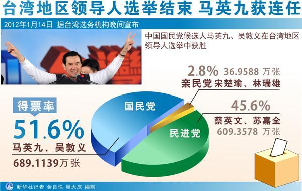2012年1月14日 圖表:臺灣地區(qū)領(lǐng)導(dǎo)人選舉結(jié)束 馬英九獲連任(圖片來源:新華社)