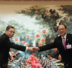 6月20日下午,海協會常務副會長鄭立中與臺灣海基會副董事長高孔廉,在上海進行兩會第九次會談預備性磋商,就海峽兩岸服務貿易協議簽署達成一致,為明天正式會談做最后準備。