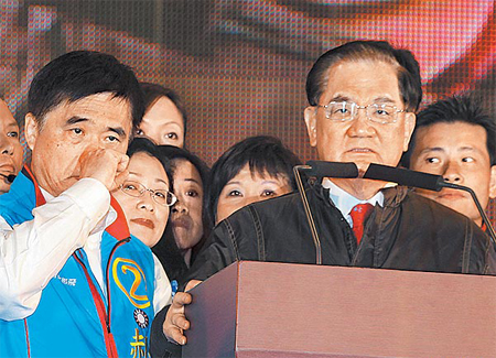 國(guó)民黨新北市長(zhǎng)候選人朱立倫的造勢(shì)晚會(huì)上,主持人崔麗心希望大家一起為連勝文祈禱,朱立倫與妻子高婉倩則紅著眼眶上臺(tái),請(qǐng)群眾幫連勝文祈禱,“他是2個(gè)可愛(ài)孩子的爸爸,勝文很善良,也很可愛(ài)。”現(xiàn)場(chǎng)很多女性民眾也淚流滿面。
