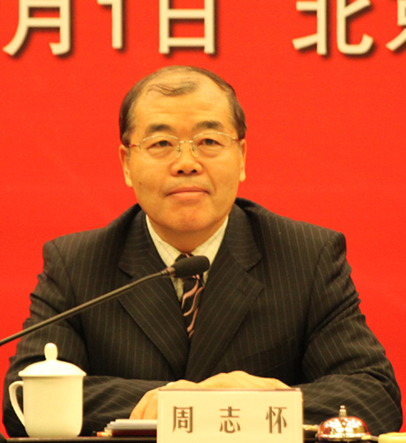 全國臺灣研究會在北京舉辦“2010年臺灣政局暨兩岸關系回顧與展望”研討會,全國臺灣研究會執行副會長兼秘書長周志懷主持并發言。(中國臺灣網 李杰 攝)