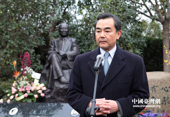 12月24日,中共中央臺辦和海協會在上海為汪道涵同志逝世五周年舉行了簡短而隆重的祭奠活動,王毅主任在現場發表講話。