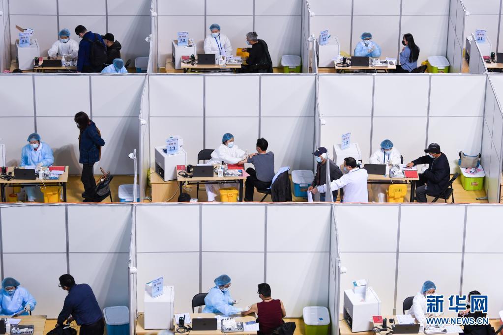 3月28日,在華東師范大學閔行校區體育館內,師生們在接種新冠疫苗。新華社記者 劉穎 攝
