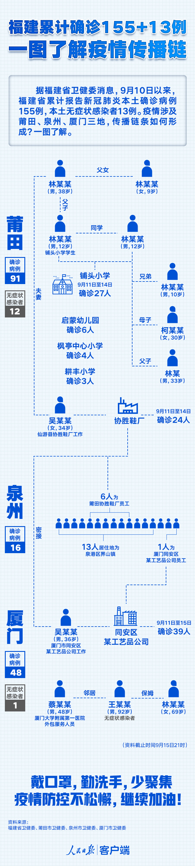 福建累計確診155+13例,一圖了解疫情傳播鏈