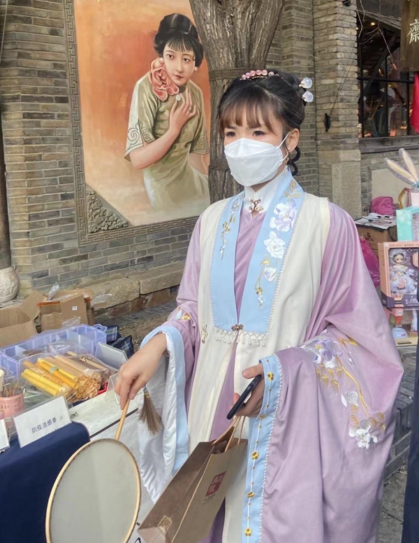 躍上石橋,橋下幾尾魚兒咧嘴笑,在蓮間嬉戲,吵得石縫中的泥鰍不禁抱怨了起來。小跑著進(jìn)了有著像錦鯉一般花紋的布匹的染坊,夕陽下影子被拉得斜長,風(fēng)吹拂著布匹,長長的從竹竿上垂落,手上忘記了是在哪系的彩繩,和淡雅的粗布相互呼應(yīng)。拉扯著布匹,把布角在手指間揉搓,弄得它皺皺巴巴的。紅色的裙擺被香風(fēng)吹拂,在這里竟顯得有些俗艷了。心頭有些不舒服,一絲愧疚爬上來,便羞得跑開了。