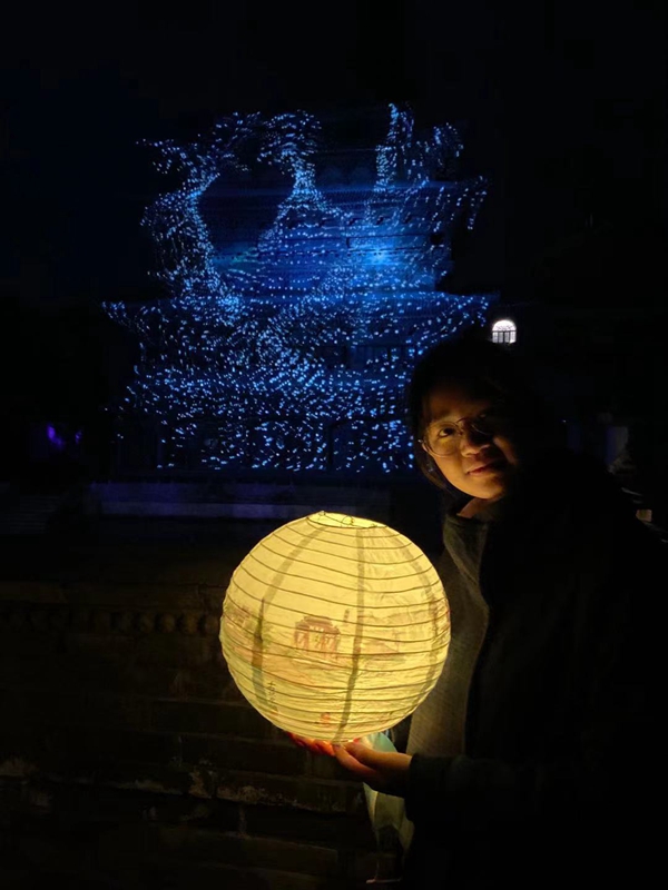 天邊是華麗的朱紅,遙遠(yuǎn)的地方已有些深藍(lán),提著燈籠在人流中穿行,一步步的注視著夜色降臨。行人都集中到一處去了,廣場上音樂響著,街道兩旁商鋪更是熱鬧的很。但這樣的喧囂只是一時的,但天黑透時,游人便稀疏了起來。走在安靜的石板街,一晚月圓照弄堂,夜色里籠罩的是陳年的古巷。白日喧鬧的戲園不聲不響,空蕩蕩的上鎖了廂房。又與那老樹重逢了,白月光下他愈發(fā)的滄桑和沉穩(wěn),更是多了幾分古韻。過路的行人注視著他,不覺停住了腳步,他有力的枝干撐著夜色的天空,鳥兒縮在他茂密的葉片間,像是被一位慈祥的祖父守護(hù)著。