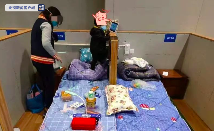 方艙醫(yī)院里的隔離病床原本是一人一床保持距離,鑒于前來(lái)入住的感染者中,有媽媽帶著年幼的孩子。在陌生的環(huán)境里,孩子夜晚入睡會(huì)產(chǎn)生不安的情緒。于是,護(hù)士們?cè)谝粋(gè)隔間內(nèi),將兩張單人床合并,組合成一個(gè)“親子大床”,夜晚媽媽可以拉著孩子的手入睡。