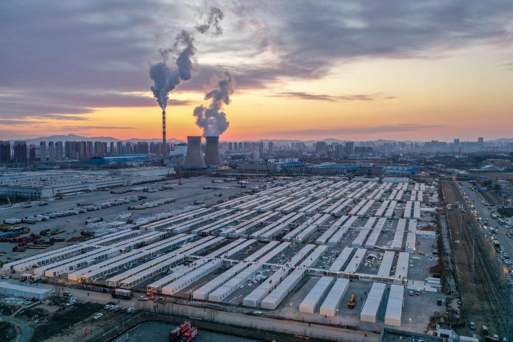 這是3月20日傍晚拍攝的吉林市高新南區(qū)隔離方艙建設(shè)現(xiàn)場(chǎng)(無(wú)人機(jī)照片)。新華社記者 張楠 攝
