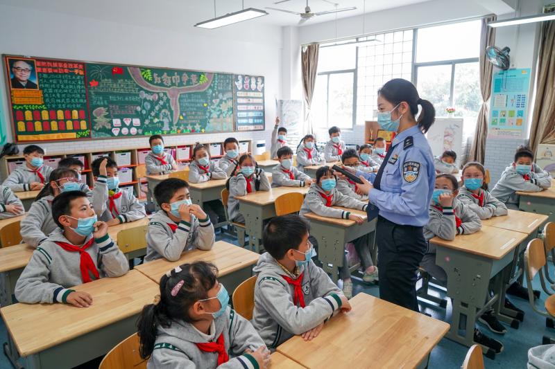 4月14日,南京市公安局建鄴分局沙洲派出所民警王舒馨在轄區(qū)內(nèi)一所小學(xué)為同學(xué)們進(jìn)行國家安全教育宣傳活動(dòng)。