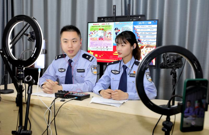 4月14日,安徽省安慶市公安局迎江分局大南門派出所民警通過網(wǎng)絡(luò)直播向居民講解國家安全相關(guān)知識(shí)。