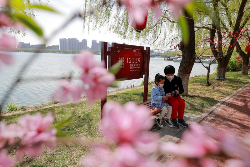 4月14日,在河北省固安縣人民廣場宣傳點(diǎn),工作人員向群眾發(fā)放相關(guān)知識(shí)手冊。