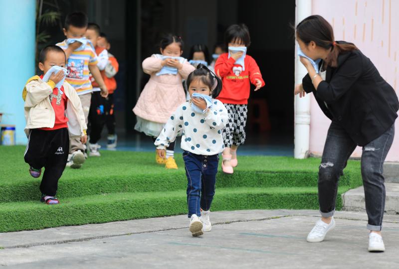 4月14日,貴州省從江縣剛邊鄉(xiāng)中心幼兒園的小朋友們在老師的組織下進(jìn)行應(yīng)急避險(xiǎn)演練。
