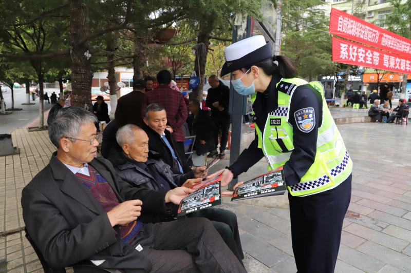 4月14日,在貴州省赤水市,民警向市民講解國家安全相關(guān)知識(shí)。