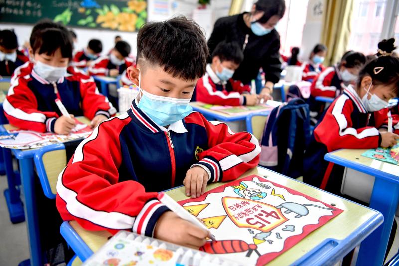 4月14日,在安徽省亳州市風(fēng)華桐鄉(xiāng)路小學(xué),學(xué)生參加“全民國家安全教育日”主題繪畫活動(dòng)。