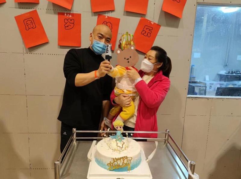 看著醫(yī)護人員為桐桐準備的驚喜,以及“大白”身上手寫的祝福語,劉磊百感交集。他說,桐桐母親在懷孕時查出了疾病,去年4月15日,桐桐剛出生沒多久,妻子又再次被推進了手術室。“我記得很清楚,那個時候我是兩家醫(yī)院分頭跑、分頭照顧。這一年雖然累點,但有孩子有家人陪伴,我其實挺充實的。雖然因為疫情的原因只有我和桐桐爺爺在汶水路方艙醫(yī)院里陪孩子過生日,但有這么多人陪伴,我很感動。”劉磊告訴記者,前幾天,桐桐母親就在微信上一直詢問如何給孩子過周歲生日。“醫(yī)護人員太忙了,所以我們一開始只想能不能麻煩醫(yī)護人員煮個面、下個荷包蛋,但沒想到他們給了我們這么大的驚喜。”劉磊說。