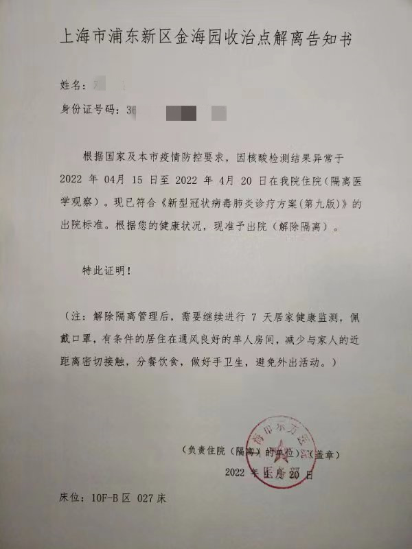 我們所處的金海園方艙隔離點于4月15日下午正式啟動,該方艙共有床位2000張。啟動當天首批共收治來自北蔡鎮、曹路鎮、康橋鎮等地的陽性感染者900余人。