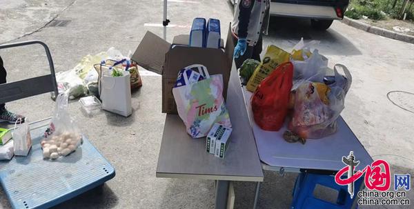 圖片說明:崔女士所在小區收到的政府發放物資。(圖片由受訪者提供)