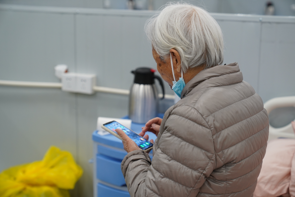 王漫如老人在臨港方艙醫院休息(新華社記者楊有宗 攝)