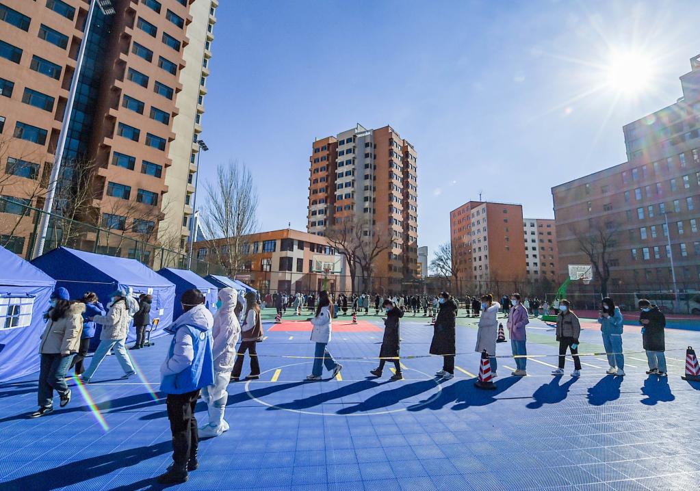 3月2日,內(nèi)蒙古醫(yī)科大學(xué)學(xué)生在校園內(nèi)排隊做核酸檢測。新華社記者 彭源 攝