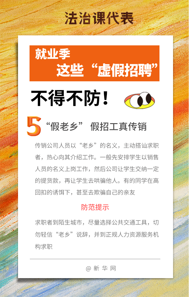 近日,人力資源和社會保障部會同國家市場監督管理總局發布通知,部署開展為期兩個月的清理整頓人力資源市場秩序專項行動,通知明確要以打擊虛假招聘等為重點。以下為幾種常見的“虛假招聘”套路,大家一定要注意防范!