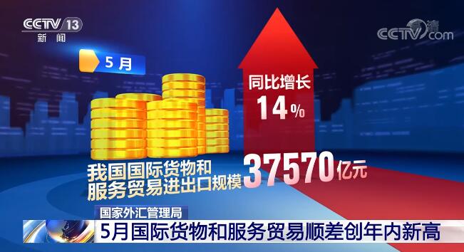央視網(wǎng)消息:國家外匯管理局昨天(6月30日)公布國際貨物和服務貿(mào)易最新情況。數(shù)據(jù)顯示,5月我國國際貨物和服務貿(mào)易順差創(chuàng)年內(nèi)新高。