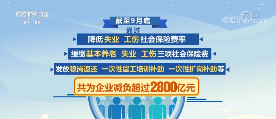 截至9月底,通過降低失業、工傷社會保險費率,緩繳基本養老、失業、工傷三項社會保險費,發放穩崗返還、一次性留工培訓補助、一次性擴崗補助等,共為企業減負超過2800億元。1—9月,就業補助資金支出727億元。