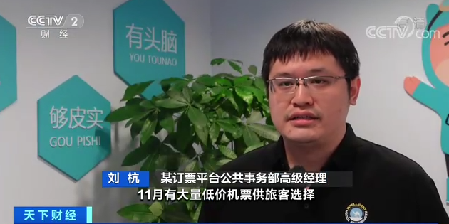 某訂票平臺公共事務部高級經理 劉杭:11月有大量低價機票供旅客選擇,裸票價格低于200元。
