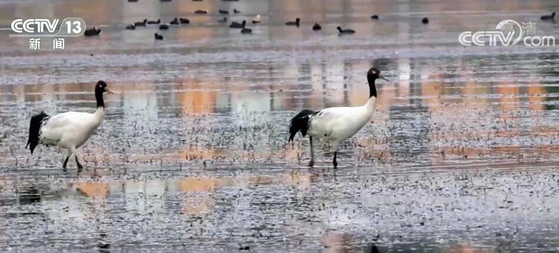 大批候鳥飛抵瀘沽湖越冬 國(guó)家一級(jí)保護(hù)動(dòng)物黑頸鶴現(xiàn)身