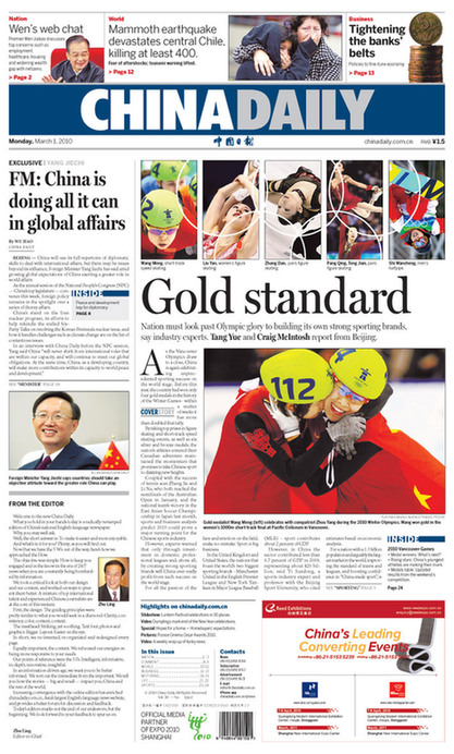 改版后的《中國日報》以“解讀中國,點評世界”為報道主題,將打造與中國國際地位相稱的世界一流英文媒體作為目標。旗下的《中國日報(美國版)》和《中國日報(香港版)》將一同改版。中國日報總編輯朱靈表示,日益繁榮昌盛的中國正吸引著越來越多的國際關注,即將召開的2010年中國“兩會”尤其為世人所矚目。作為被外媒轉引最多的中國報紙,《中國日報》在“兩會”召開前夕全面改版,并成立了歷史上規模最大的報道組采訪報道“兩會”,就是要借此時機更加全面、客觀地回應海外受眾關切,更好地向世界說明中國。
