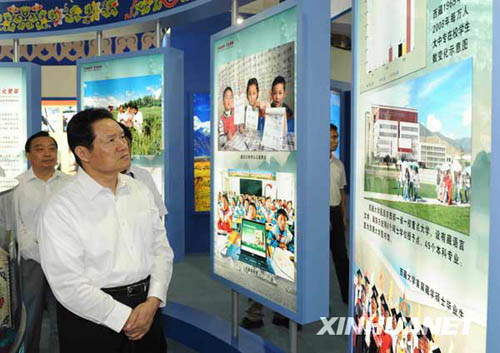 9月9日,中共中央政治局常委、中央政法委書記周永康在北京民族文化宮參觀內蒙古、新疆、廣西、寧夏、西藏自治區成就展。新華社記者 丁林 攝