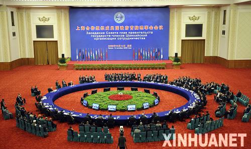 10月14日,上海合作組織成員國總理第八次會議在北京人民大會堂舉行。中國國務院總理溫家寶主持會議。這是大會會場。新華社記者謝環(huán)馳攝