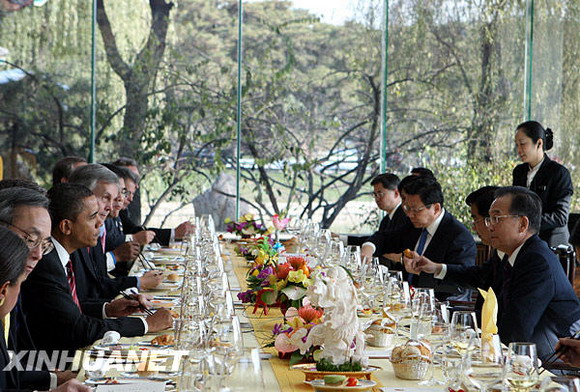 11月18日,中國國務院總理溫家寶在北京釣魚臺國賓館會見正在中國進行國事訪問的美國總統奧巴馬,并為他舉行工作午宴。新華社記者 姚大偉 攝