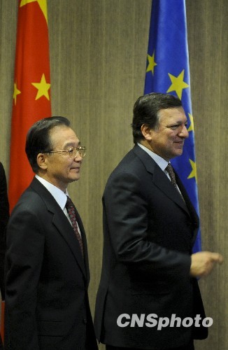 第十二次中歐領導人會晤三十日在南京舉行。會后,中國總理溫家寶與巴羅佐等歐方領導人共見記者。