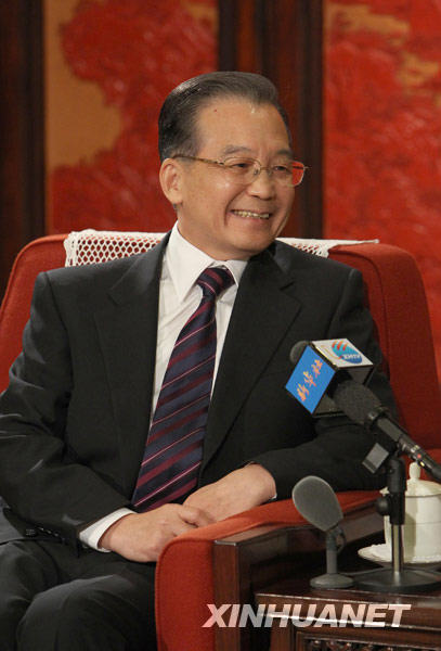 12月27日,中共中央政治局常委、國務院總理溫家寶在北京中南海紫光閣接受新華社記者獨家專訪,就當前經濟形勢、明年經濟工作和其他問題回答記者提問。新華社記者姚大偉攝